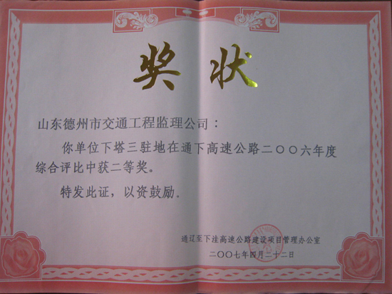 2006年內(nèi)蒙下塔高速綜合評比“二等獎”
